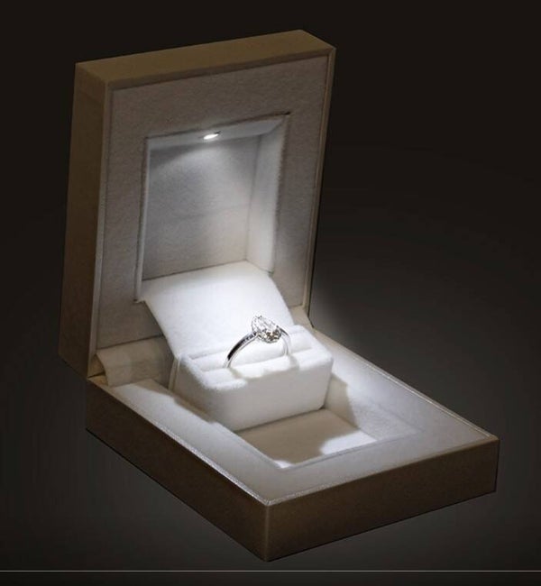 Geef jouw speciale moment een magische touch met dit elegante ringdoosje met ingebouwde LED-verlichting. Zodra het doosje opent, schijnt het subtiele licht prachtig op de ring, waardoor de schittering van de ring nog beter tot zijn recht komt.