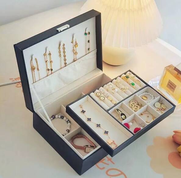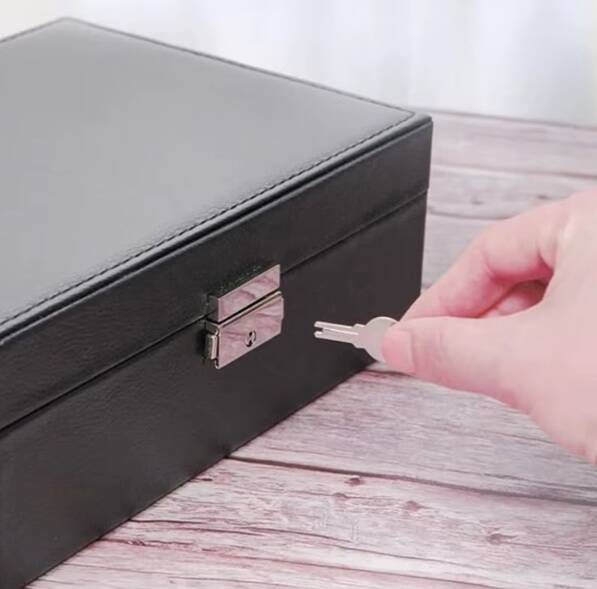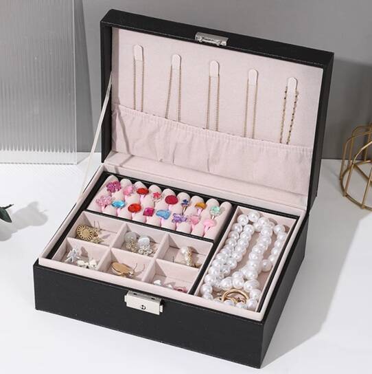 Deze sieradendoos met slot en uitneembare tray is de perfecte mix van elegantie en smart storage. Dankzij het ontwerp met meerdere lagen kun je al je sieraden overzichtelijk opbergen zonder gedoe. Of je nu ringen, kettingen, oorbellen of armbanden hebt — alles heeft een vaste plek. De stijlvolle kleur en slimme indeling maken het een prachtig accessoire voor jouw kaptafel.