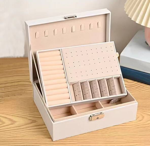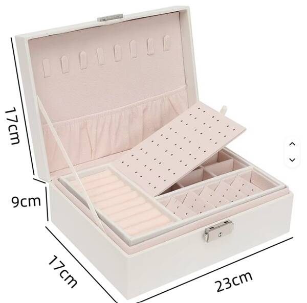 Deze sieradendoos met slot en uitneembare tray is de perfecte mix van elegantie en smart storage. Dankzij het ontwerp met meerdere lagen kun je al je sieraden overzichtelijk opbergen zonder gedoe. Of je nu ringen, kettingen, oorbellen of armbanden hebt — alles heeft een vaste plek. De stijlvolle kleur en slimme indeling maken het een prachtig accessoire voor jouw kaptafel.