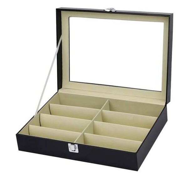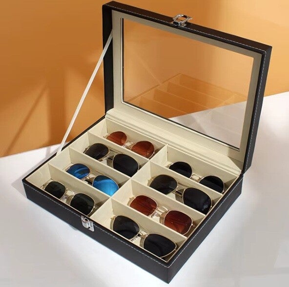 Capaciteit voor 8 brillen: Ruime vakken die geschikt zijn voor zowel grote zonnebrillen als subtiele monturen.
