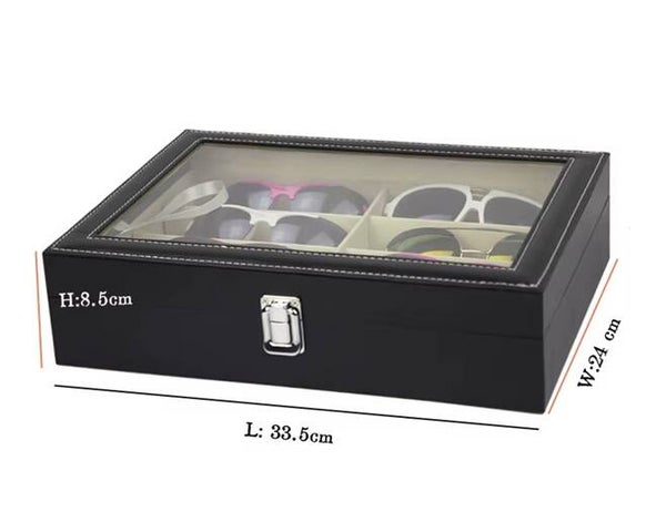 Transparant kijkvenster: Dankzij de glazen deksel zie je direct welke bril je nodig hebt, terwijl ze stofvrij blijven.
