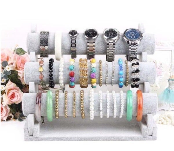 Heb je een uitgebreide collectie? Dan is deze armbanden- en horlogehouder met drie lagen de ideale oplossing. Met maximale opbergruimte en een luxe uitstraling is deze houder perfect voor sieradenliefhebbers en winkels.
